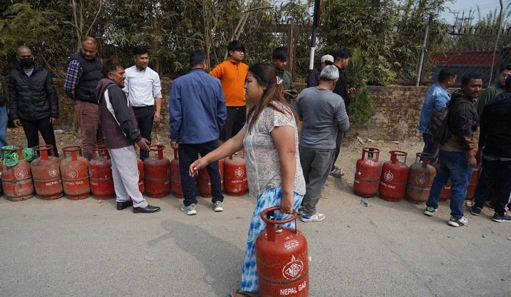 Due to tensions in the Middle East, the supply of cooking gas in Nepal has been affected. Some gas distribution depots remain closed, while long lines of consumers have formed at the few that are open.